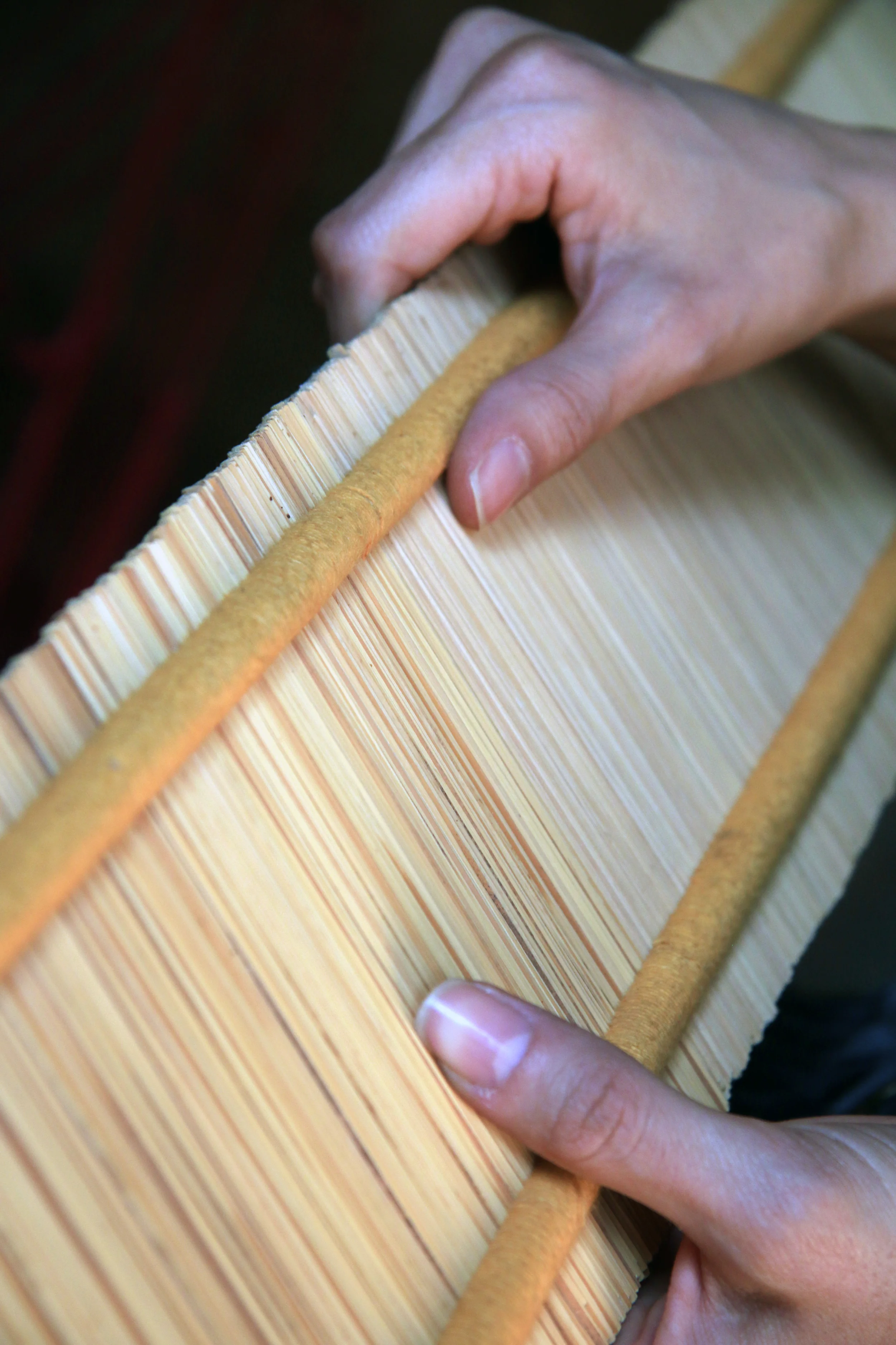 AMB is a community of traditional hand weavers. Collaboration with them started in 2013 and it is the most recent addition to our family of craft communities and the S jo ideology. This skilled community consists of men and women who work together to produce the most intricate pattern weaves on 16 shaft, pit looms. Primitive means yet precise work with amazingly straight selvedges, leave S jo's founder (Seher) a hand weaver herself awe-struck. Traditionally the community made light cotton and silk bed coverings with beautiful detail and are still highly skilled at it.